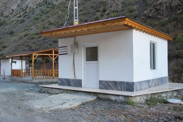 Yusufeli Belediyesi tarafından ilçe girişinde yapılan tuvaletler, kamelya, mescit ve çeşme yapımı tamamlandı.