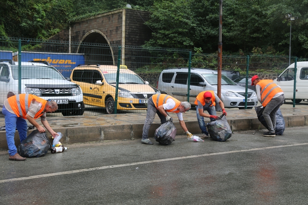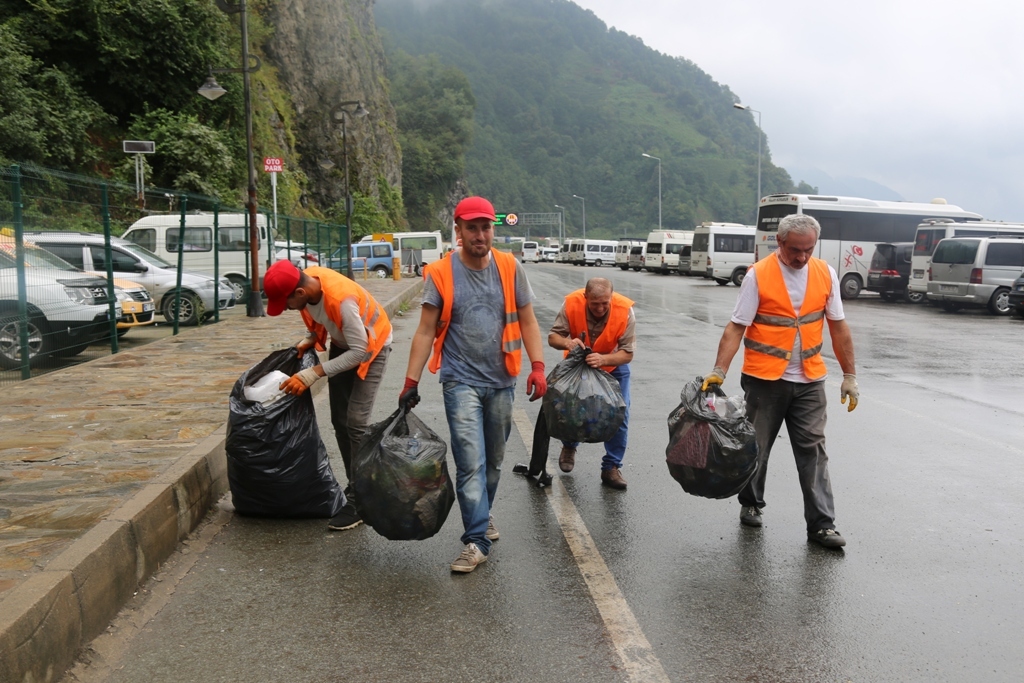 Yaklaşık 10 gün önce kurulan ve sadece söz konusu karayolunun temizliği için kurulan temizlik ekipleri, Hopa Termik Santral mevkii ile Sarp Sınır Kapısı arasındaki çift yönlü karayolunun toplam 34 kilometrelik alanı çöplerden temizleniyor.