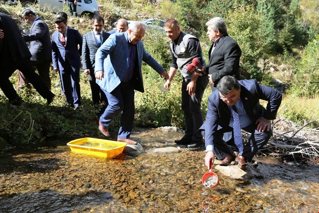 Ardından Vali Doğanay, Başkan Kocatepe ile Aydmir ile kurum amirleri Taşkıran Deresine 10 bin adet yavru kırmızı benekli alabalığı salıverdi.
