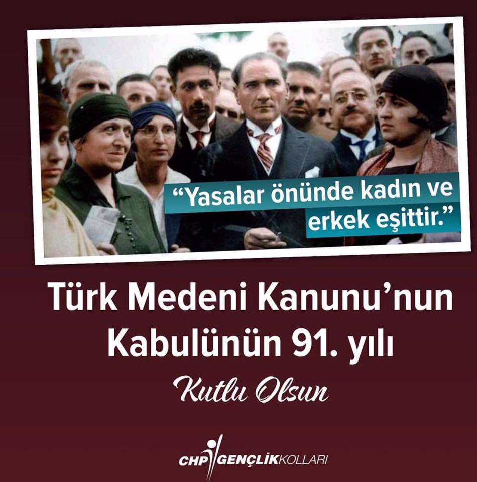 Türkiye’de nikâh kıyılması ile ilgili tartışmalar devam ederken, diğer yandan Türk Medeni Kanununun 4 Ekim 1926 yılında yürürlüğe girişinin 91. Yılı nedeniyle CHP Kadın Kolları Başkanlığı bir basın açıklamasında bulundu.