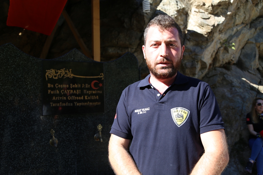 Artvin Ofroad Kulübü Başkanı Murat Yılmaz, hain saldırı soncu bu noktada şehit düşen Fatih Çaybaşı’nın adını ölümsüzleştirmek için çeşme yaptırdıklarını belirterek bir daha böyle acı bir olayın olmamasını diledi.