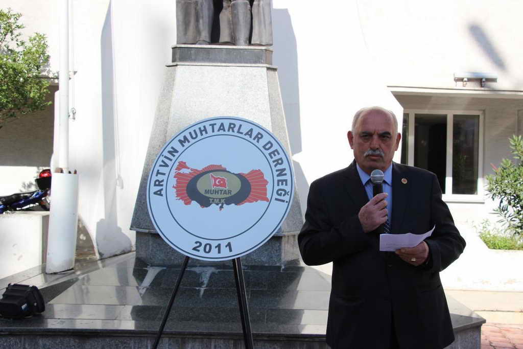 Saygı duruşunda bulunulması ve İstiklal Marşı'nın okunmasının ardından Artvin Muhtarlar Derneği Başkanı Cafer Azizağaoğlu tüm muhtarlar adına bir konuşma yaptı.