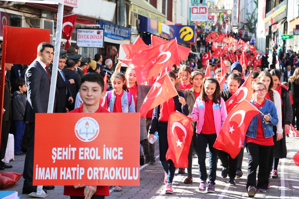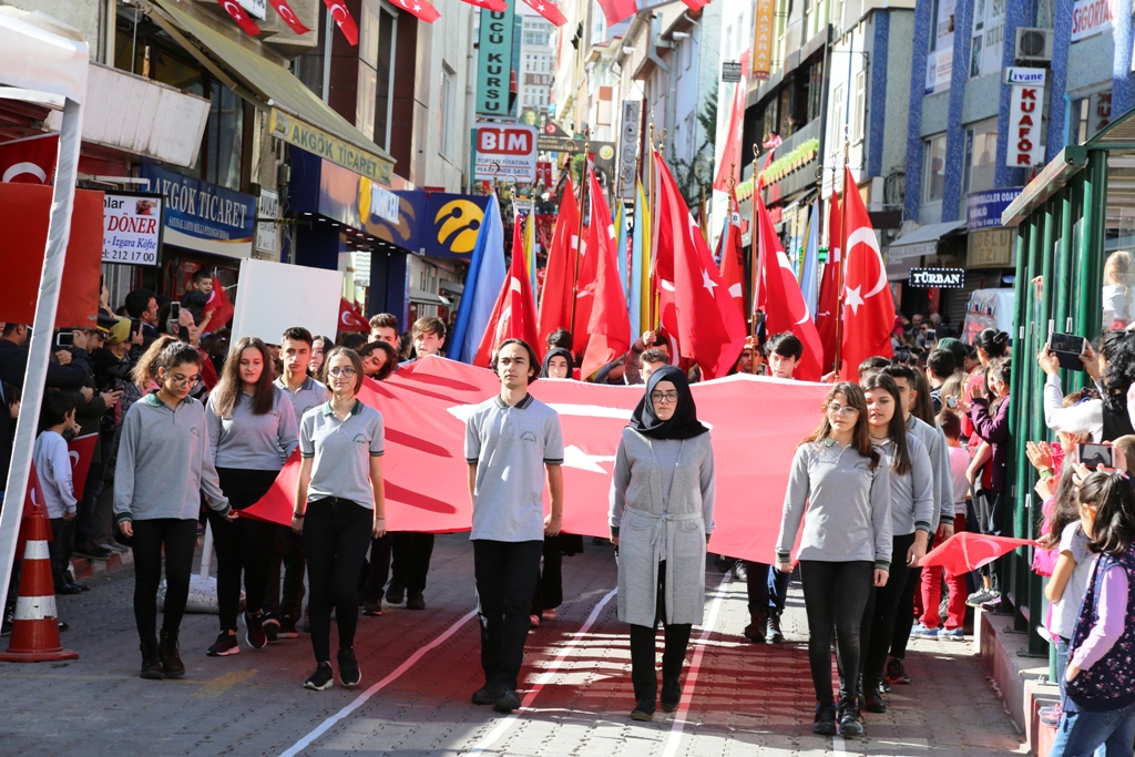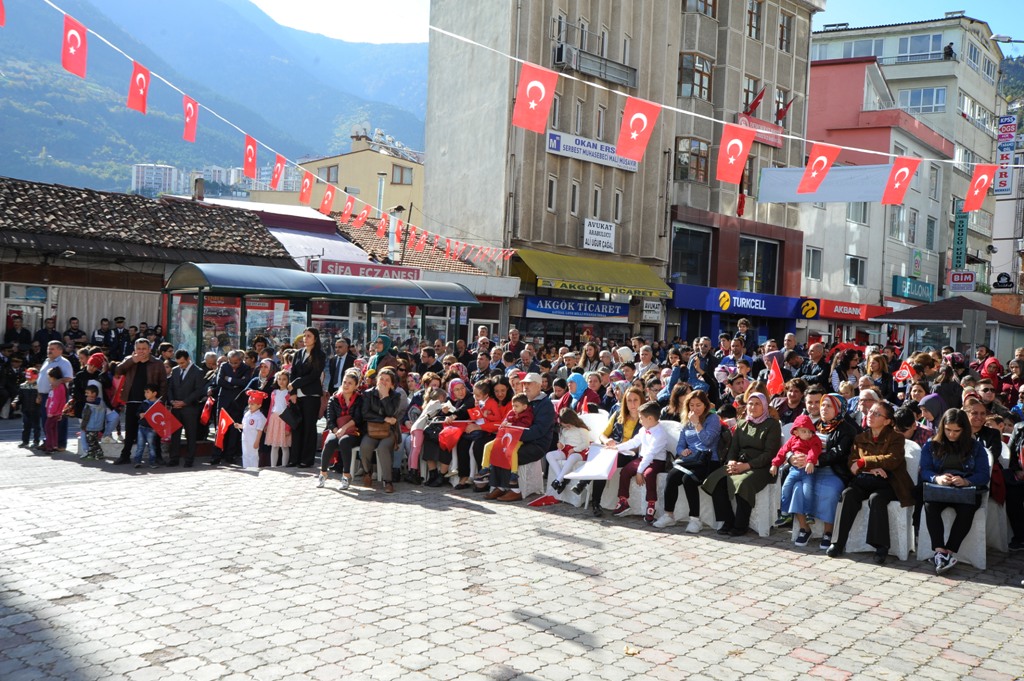 “Yunusların, Edebalilerin, Ertuğrul Gazilerin, Battal Gazilerin, Melo Şehitlerinin, Çiçek Ninelerin, Halit Paşaların, İsmet Paşaların, Kazım Karabekir Paşaların yastığı mezar taşı, yorganı kar olanların ceddimizin ve başta Gazi Mustafa Kemal Atatürk olmak üzere son devletimizi kuranların huzurunda devletimizin en büyük gününü kutlamak için burada toplandık. Yıllar önce sabrımızı, gücümüzü, azmimizi gösterdiğimiz yedi düvele bu sefer birliğimizi ve diriliğimizi, sevincimizi, saadetimizi göstermek için toplandık. Cumhuriyetimizi kuranlara bugünlere taşıyanlara şükran hislerimizi ifade etmek için toplandık. Cumhuriyetimizin 94'üncü yılını coşkuyla kutlamak için toplandık. Hepimize kutlu olsun. Bu meydandayız, memleket toprağına meydan meydan Cumhuriyet mühürleri vuruyoruz. Bu meydanlardan meydan okuyoruz. Bu meydanlara uzun ve meşakkatli yollardan geldik. 'Kalk yiğidim yine dağ başını duman aldı. Parçalandı bir kıtanın toprakları, Aslan payını Aslan olmayan aldı' diye haykırdığı günlerden geldik bu meydana. Bize biçilen kefenleri yırtarak geldik. Yolsuz, ışıksız, ilaçsız, okulsuz, günlerden geldik bu meydanlara. Kanlı Yemenlerden, Balkanlardan, Kafkaslardan, anaların babaların ümidi kestiği Çanakkale'de çırpınan Karadeniz'den, Kırım'da Kerkük'ten, 15 Temmuz'dan geldik bu meydanlara. Velhasıl bu vatan kimin sorusuna en güzel cevabı vererek geldik bu meydanlara. Batan bir imparatorluğun külleri arasında kanla, irfanla kurduğumuz Cumhuriyet sayesinde bütün meydanlar biz bir milletiz diye haykırmaktadır. Cumhuriyetin 100. yılına çok kısa bir süre kaldı. Bize düşen odur ki Cumhuriyeti hakiki manasıyla anlayıp uygulamaktır. Akıl ile, edep ile, ahlak ile, adalet ile, aşk ile, muasır medeniyet sürecini aşmaktır. İlimde, irfanda, dünyaya örnek olmaktır. Düğünde, bayramda, sevinçte, tasada omuz omuza, ele ele Cumhuriyeti geleceğe taşımaktır. Anadolu'nun bir köyünde doğan çocuğun devletin en yüksek kademesine şartlarını korumaktır. İnsana insan haklarının sunulduğu ve bu hakların sonuna kadar korumaktır. Her birimiz bulunduğumuz konumun hakkını layıkıyla vermeliyiz. Yaptığımız işi dünya ile yarışabilecek düzeyde yapmaktır. Bu vesile ile tekrar tüm şehitlerimizi ve gazilerimizi rahmetle, minnetle yad ediyorum. Cumhuriyetimizin dünya durdukça yaşamasını niyaz ediyorum. Hepinizi muhabbetle selamlıyor, sevgi ve saygılarımı sunuyorum. Bayramınız tekrar kutlu olsun” diye konuştu.