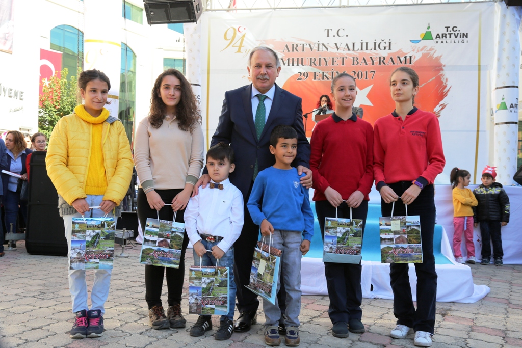 Artvin Valisi Ömer Doğanay ise törende yaptığı konuşmada, 1923'te ilan edilen Cumhuriyetin 94. kuruluş yıl dönümünü büyük bir gurur ve heyecanla kutladıklarını söyledi.