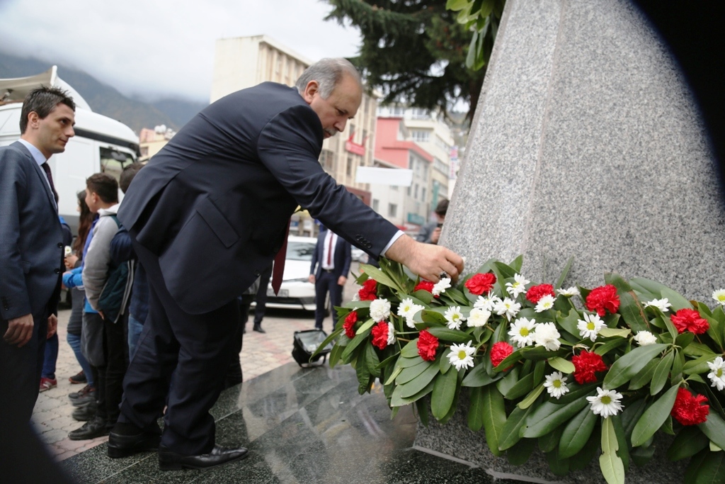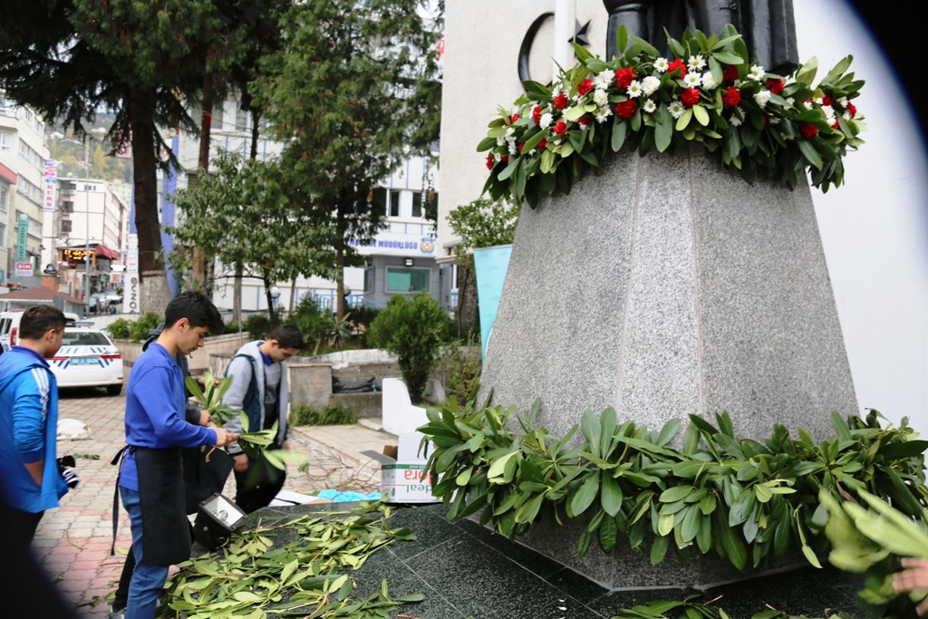 Artvin Kazım Karabekir Lisesinden bir grup öğrenci öğretmenleri himayelerinde Milli İrade Meydanı önündeki Atatürk Anıtı’nı karanfillerle süsledi.