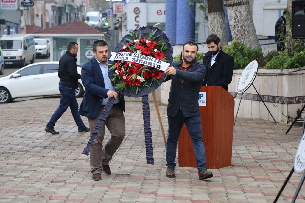CHP adına çelengi CHP Artvin İl Başkanı Ali Yücel Kurt sunarken, ADD adına ise Şube Başkanı Ayla Varan çelenk sundu.