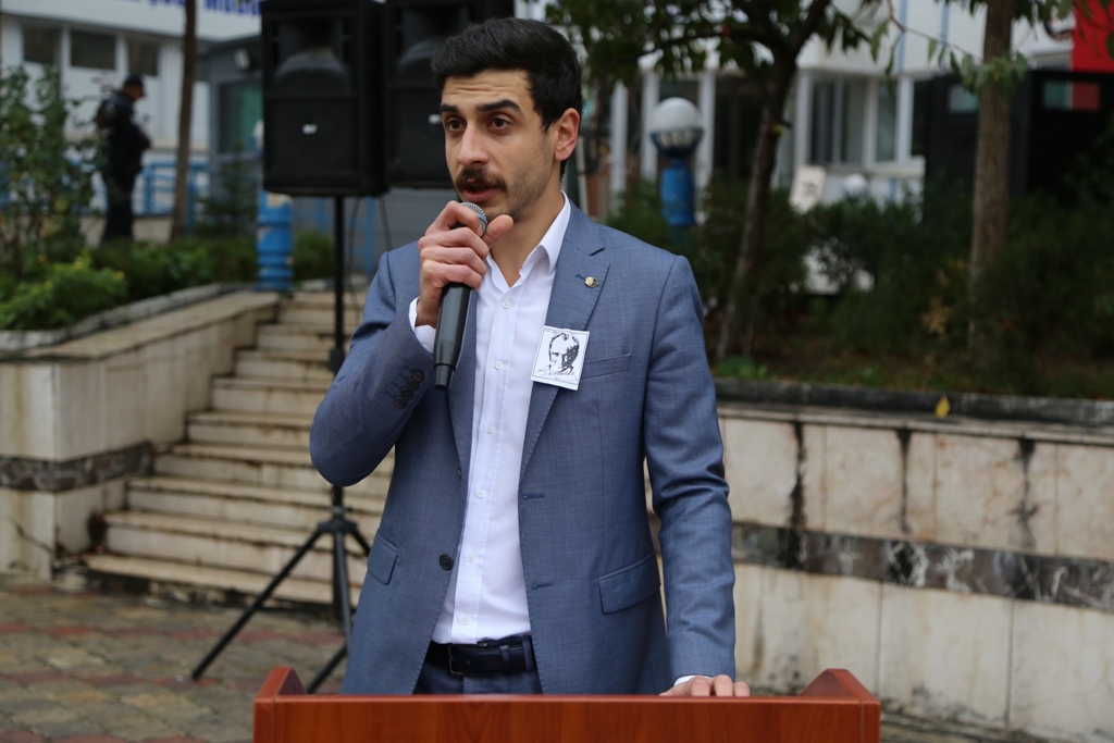 Değerli katılımcılar ulu önderimiz 57 yıllık yaşamına 11 savaş, 24 madalya, 7 nişan, 13 kitap ve 1 ülke sığdırmıştır. Bunları elbette tek başına yapmamıştır, kendisine inanan Türkü, Kürdü, Laz’ı, Çerkez’i, Alevi’si, Sünni’si yani kısacası bu topraklarda yaşayan her kesimi birleştirerek başarmıştır. Onları hiç bir zaman sınıflandırmamıştır. Atatürk’ün silah arkadaşlarını bir kez daha saygı ve minnetle anıyorum. O günlerden bugünlere bakıyorum bir tarafta lideri hayatını kaybetti diye silahını kalbine ateşleyen Ulu Önderimizin Yaveri Salih Bozok diğer tarafta terör örgütüne mensup olduğu tespit edilen yaverler. Bazı durumlarda söze gerek kalmaz her şeyi ortaya koyan durumlar vardır. Bu örnekte onlardan biriydi. Söylenecek daha çok şey var bunları son nefesimize kadar her yerde dile getireceğiz. Ulu önderimizi anmak kadar önemli olan bir diğer konuda söylediğimiz gibi onu anlamak onun eserlerini yaşatmaktır. Bugün bizler burada konuşabiliyorsak halen daha Atatürk’ün bu ülkeye getirdiği demokrasi sayesindedir. Kadınlarımız ve erkeklerimiz bu ülkede eşit şartlar altında yaşayabiliyorsa Atatürk’ün ilke ve inkılâpları sayesindedir. Hiç bir şey için geç değildir. Birileri ulu önderimizin bizlere bıraktığı en büyük miras olan Cumhuriyeti yok etmeye çalışıyorlar ancak bizler var oldukça ne cumhuriyet yok olacaktır, ne de cumhuriyetin bizlere kazandırdığı değerler. Her zaman dediğimiz gibi ne senden nede eserlerinden vazgeçeriz. Hepinize katılımlarınızdan dolayı teşekkür eder. saygılarımı sunarım” dedi.