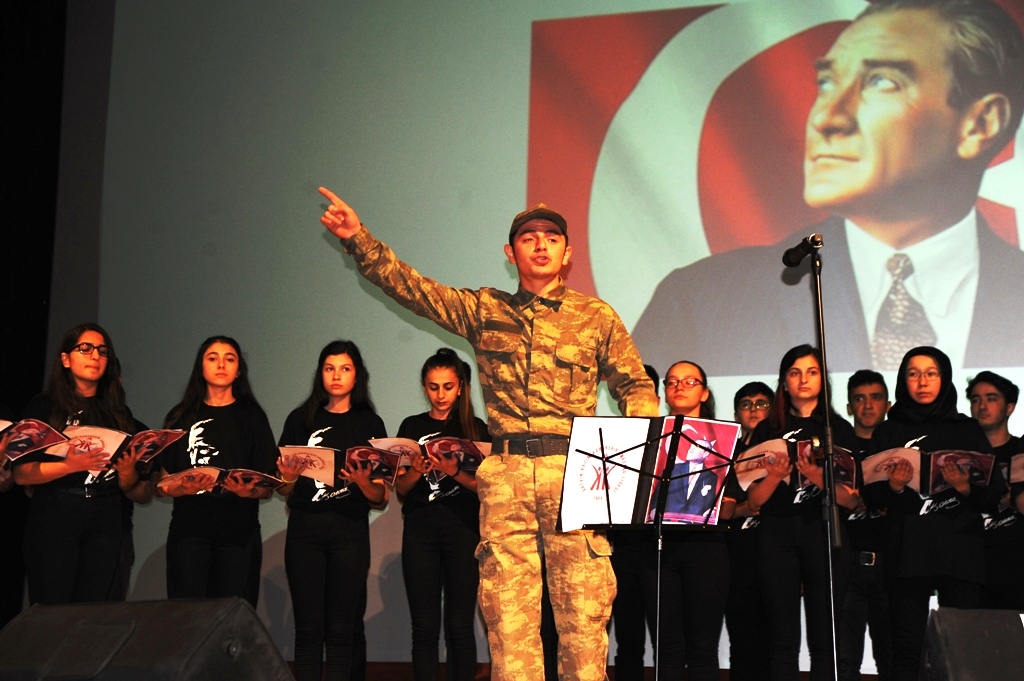 Saygı duruşu ve İstiklal Marşı’nın okunmasıyla başlayan programda, Atatürk’ün askeri yönünü anlatan bir konuşma yapan Piyade Binbaşı Hüseyin Onur Korkut, Mustafa Kemal’in her daim Türk Milleti’nin şerefli bir yaşam için özgürlük ve bağımsızlığını savunduğunu söyledi.