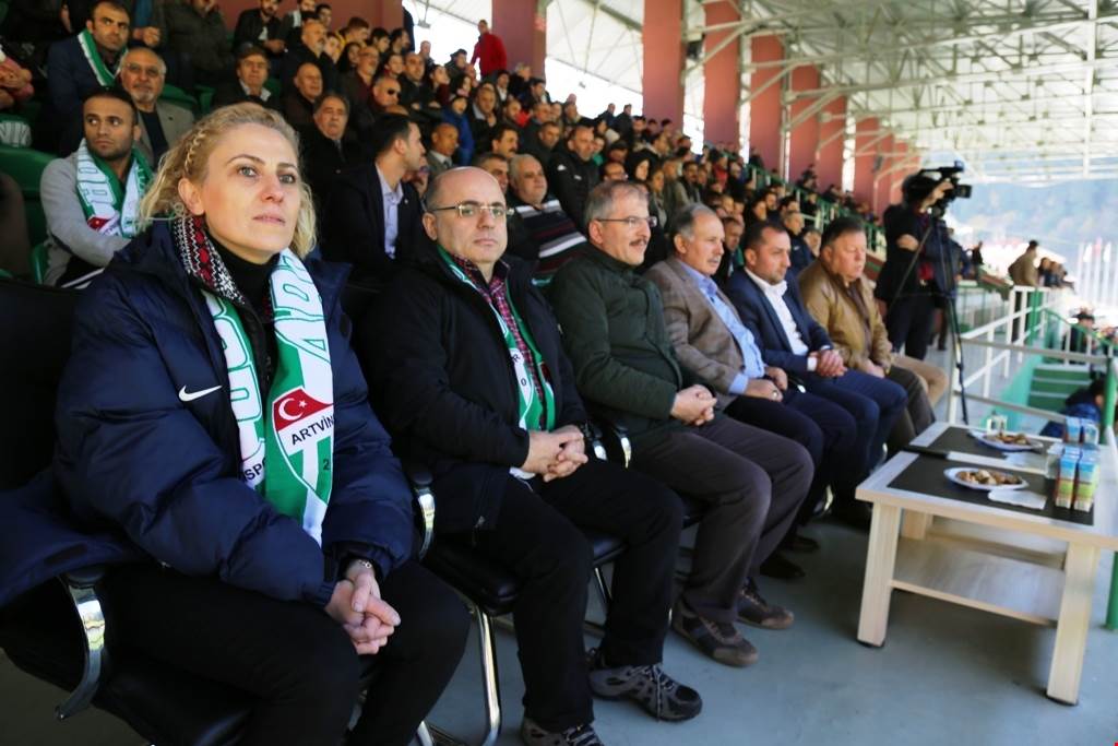 Buradaki karşılaşmayı Vali Doğanay’ın yanı sıra Artvin Belediye Başkan Yardımcısı Erkan Yazan, Artvin Ticaret ve Sanayi Odası Yönetim Kurulu Başkanı Kurtul Özel, Gençlik Hizmetleri ve Spor İl Müdürü Bahattin Yetim, Artvinspor Kulübü Başkanı İrfan Yıldırım, Artvin Çoruhspor Başkanı Murat Yılmaz ile çok sayıda vatandaş izledi.