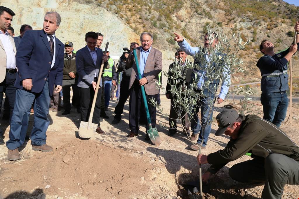Konuşmaların ardından Vali Doğanay ile beraberindekiler 2 bin 500 zeytin fidanını toprakla buluşturdu.