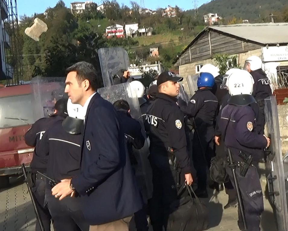 Hopa’da Bölgesel Amatör Ligi 3'üncü Grup'ta oynanan ve olaylı geçen Artvin Hopaspor ile Kelkit Belediye Hürriyetspor karşılaşması sonrası Kelkit taraftar grubu içerisinden atılan parke taşı, İlçe Emniyet Amiri Gökhan Erdal'ın başını teğet geçti.