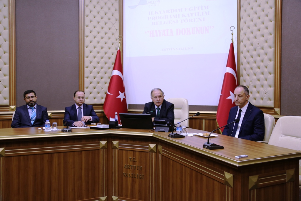 Artvin Valiliği Proje Ofisi tarafından yürütülen “Hayata Dokunun” projesi kapsamında öncelikle İlkyardım Yönetmeliği doğrultusunda; toplumsal İlkyardım bilinci oluşturulması, standart ilkyardımın yaygınlaşmasının sağlanması ve yanlış müdahaleler sonrasında meydana gelen sakatlanma ve ölümlerin azaltılması için 43 merkez köy muhtarları, 44 imam hatip ve 23 öğrenci servis şoförlerine sertifikalı İlk yardım eğitimi verildi.