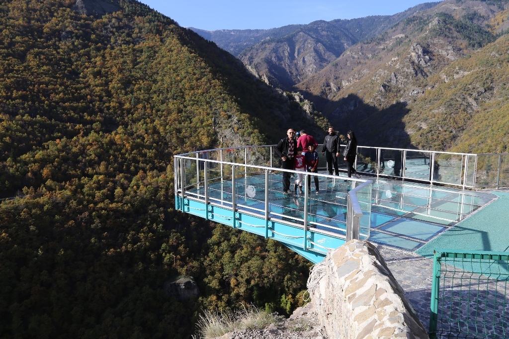 Kaya birleşim noktasından 15 metrelik mesafeye uzanan cam seyir terası, 7 metre uzunlukta ve 7.5 metre genişliğe sahip. Turistlerin yanı sıra bölgeyi ziyarete gelen doğa tutkunları da yaklaşık 50 metrekare genişliğindeki cam alanda eşsiz manzarayı izleme fırsatı buluyor. Cam seyir terasının bölgede havaların ısınmasıyla birlikte yeni turizm sezonunda da yeniden ziyaretçilerinin akınına uğraması bekleniyor.