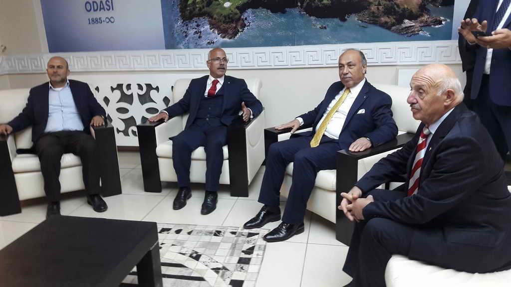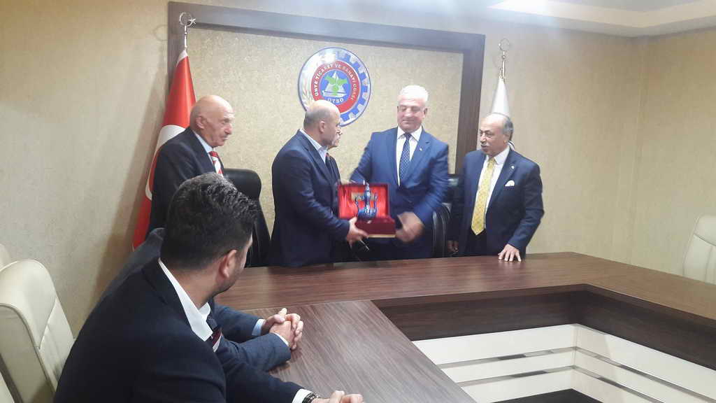 Hopa Ticaret ve Sanayi Odası Samsun Gıda Fuarı açılış törenine katıldıktan ve fuar alanının gezdikten sonra dönüş güzergâhında Ünye Ticaret ve Sanayi Odasını ziyaret etti. ÜTSO Meclis Başkanı Hamza Gülay, Yönetim Kurulu Başkanı Durmuş Zor ve diğer kurul üyeleri tarafından makamda misafir edilen Hopa TSO Heyeti adına Başkan Osman Akyürek kabullerinden dolay ev sahibi oda yöneticilerine teşekkürlerini sundu.