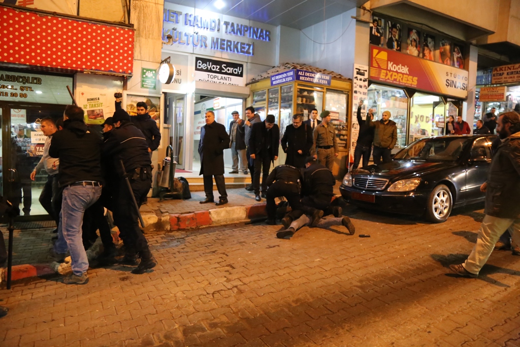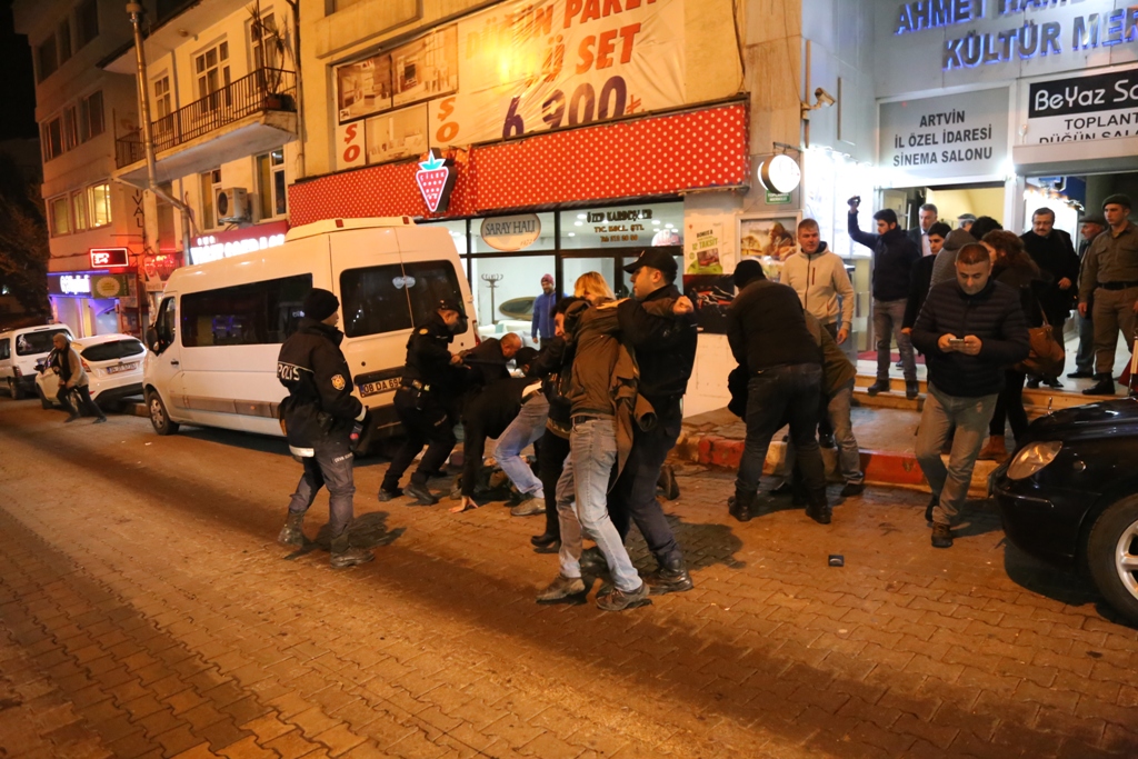 Artvin'de, Ensar Vakfı tarafından Mevlid-i Nebi Haftası etkinlikleri kapsamında düzenlenen konferansı protesto eden 10 kişilik grubu, polis biber gazı ve copla müdahale edip, gözaltına aldı.