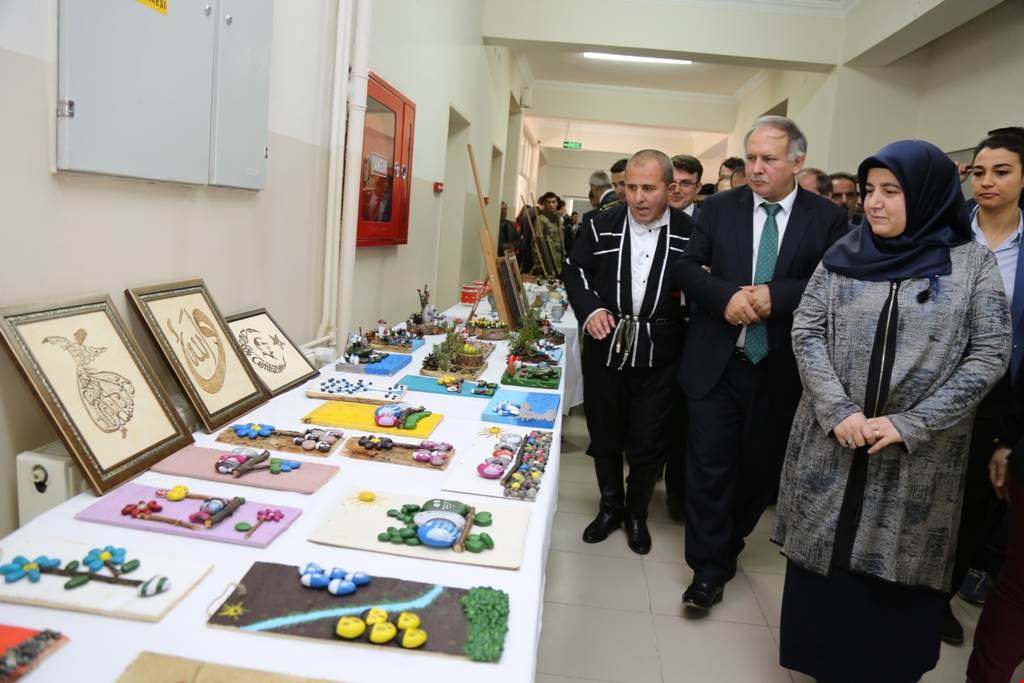 Etkinlik sonunda, engelli öğrencilerin hazırladığı el emeği göz nuru sergi gezildi.