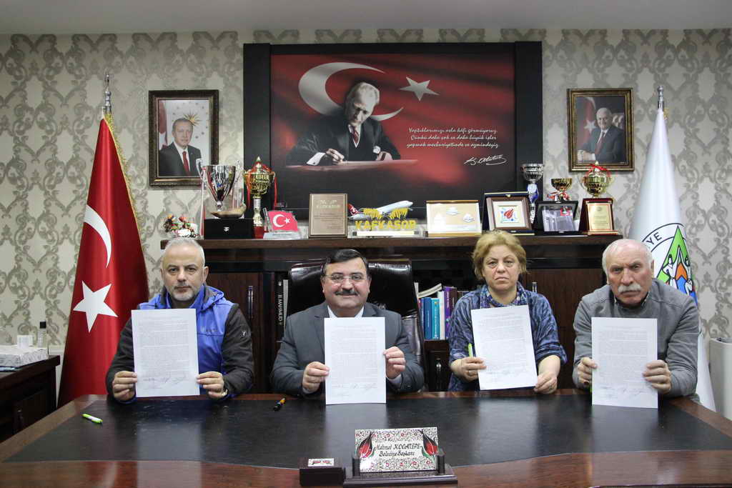Artvin Belediye Başkanı Mehmet Kocatepe’nin makamında yapılan basın açıklamasına AK Parti Belediye Meclisi Gurup Başkanı Ahmet Çelik, CHP Belediye Meclisi Gurup Başkanı Nermin Albayrak, MHP Belediye Meclisi Gurup Başkanı Tahsin Arslan ortak basın bildirisini okuyarak imzaladılar.