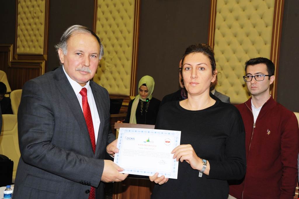 Konuşmaların ardından, Vali Doğanay ve protokol tarafından yaklaşık 5 gün süren 30 saatlik “Kamu kurumlarının hibe olanaklarına erişim ve proje planlanma, yazma ve yürütme kapasitelerinin güçlendirilmesi programını başarıyla tamamlayan 30 kursiyere belgeleri verildi.