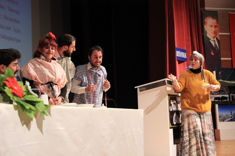 Öztürk Serengil Sahnesi Tiyatro Ekibinin yazıp oynadıkları ‘Bizim Haller’ adlı skeçlerle eğitime renk katarak izleyicileri kahkahaya boğdu. Oyuncunlar sahnede Artvin’in doğal güzelliklerini ve yöreye özgü tatları anlattı.