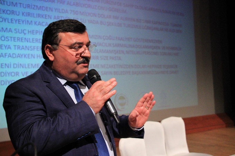 Başkan Kocatepe ;” Belediyenin işi turizmle uğraşmak değildir ama biz turizmde farkındalık oluşturmak istiyoruz. Bunu belediye olarak tek başımıza yaptığımız bir şey değil il milli Eğitim Müdürlüğümüz, Artvin Çoruh Üniversitemiz, Kültür Turizm İl Müdürlüğümüz, İşkur, Esnaf Sanatkârlar Odamız, Ticaret ve Sanayi Odamız ve şehrimizin tanıtımını yapan medya mensuplarıyla beraber bir bütün olarak yapıyoruz. Esnaf arkadaşlarım sizin işyerlerinizde arkadaşlarımız gelerek ne nasıl olmalıdır diye eğitim verecekler bunu ukalalık olarak algılamayın karınca kararınca daha iyi hizmet için bir şeyler yapmaya çalışıyoruz. Bizim zenginliklerimiz büyük şehirlerde yok biz büyüyüp onlar gibi olabiliriz ama onlar bizim zenginliklerimize sahip olamazlar.” diye sözlerini tamamladı.