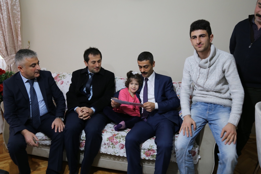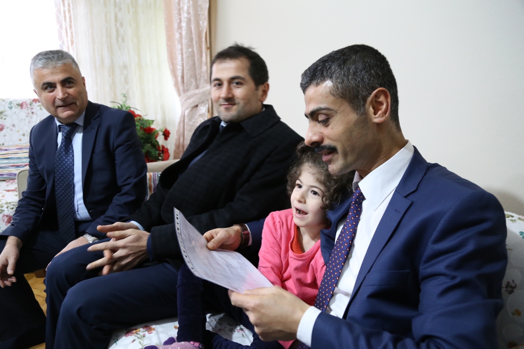 Artvin İl Milli Eğitim Müdürü Abdulcelil Kahveci Milli Eğitim Bakanlığı’nın “Evde eğitim uygulaması” kapsamında eğitim alan ve 2017-2018 eğitim öğretim yılı birinci döneminin sona ermesiyle ilk kez karne heyecanı yaşayacak 7 yaşındaki 1. sınıf öğrencisi Elif Nur Oral’ı evinde ziyaret ederek karnesini takdim etti.
