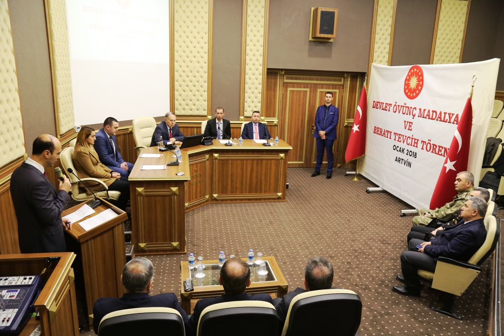 Artvin Valiliği Çoruh Toplantı Salonunda gerçekleştirilen törende Artvin Valisi Ömer Doğanay, Devlet Övünç Madalyası ve Berat’ını Cumhurbaşkanımız Sayın Recep Tayyip Erdoğan adına 15 Temmuz Gazilerine takdim etti.