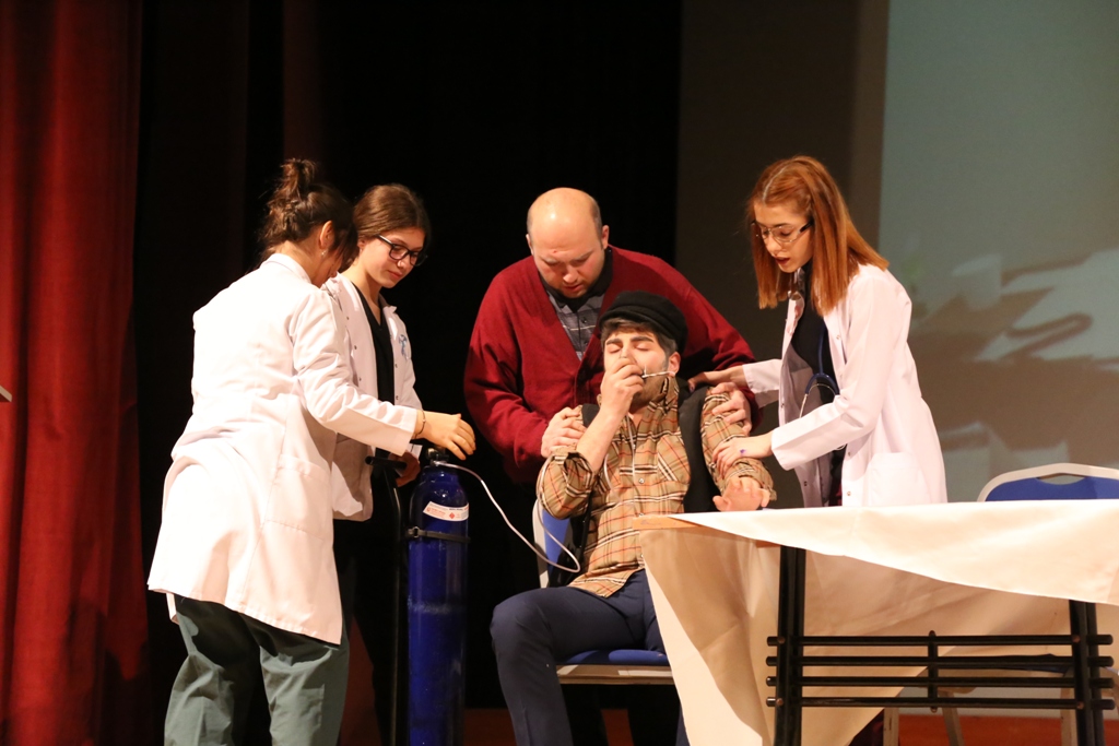 Konuşmalar sonrasında aralarında Artvin Devlet Hastanesi Başhekim Yardımcısı Sibel Şahin’inde bulunduğu, doktor hemşire ve teknikerlerden oluşan sağlık çalışanları kanser tedavisinde erken teşhisin önemini anlatan tiyatro gösterisi sahneledi.