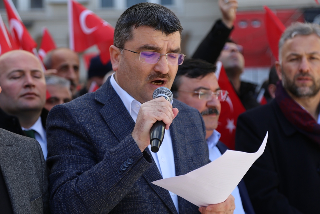 Artvin Memur Sen İl Başkanlığınca “Tüm Anadolu Ayaktayız, Emperyalizme Karşı Savaştayız” sloganıyla Halitpaşa Meydanı’nda düzenlenen basın açıklamasında ellerinde Türk Bayrakları taşıyan grup emperyalizm ve terör karşıtı sloganlar attı.