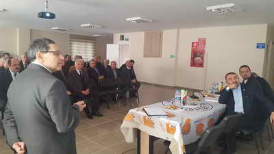 Toplantı öncesi İlçe Özel İdare Müdürü İbrahim Altun köylere yapılan hizmetler ile ilgili köy muhtarlarını bilgilendirdi.