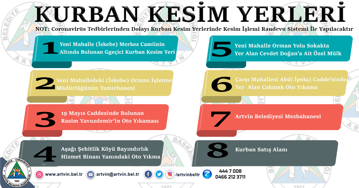 ARTVİN’DE KURBAN KESİM YERLERİ BELİRLENDİ Artvin Belediyesi ve İl Müftülüğü tarafından Artvin’de kurban kesim yerleri belirlendi. Artvin Belediyesi ve Ar