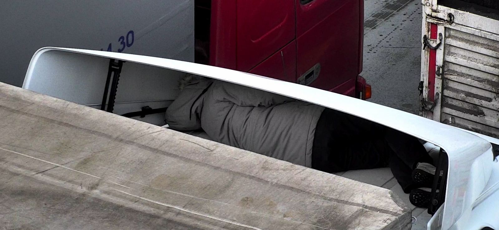 SARP SINIR KAPISI’NDA İNSAN KAÇAKÇILIĞI Sarp Sınır Kapısında bir tırın çekicisi ile rüzgarlığının arasına saklanmış vaziyette bir kişi yakalandı.