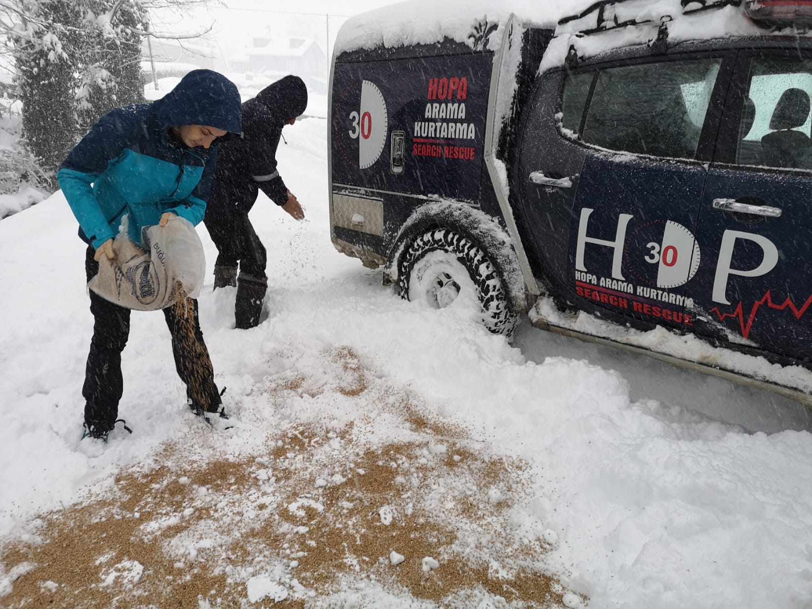 Artvin’de Yabani Hayvanlar İçin DoÄŸaya Yem Bırakıldı Artvin’de, ağır kış ÅŸartları nedeniyle yüksek bölgelerde yiyecek bulmakta zorlanan kuÅŸlar ve yaban hayv