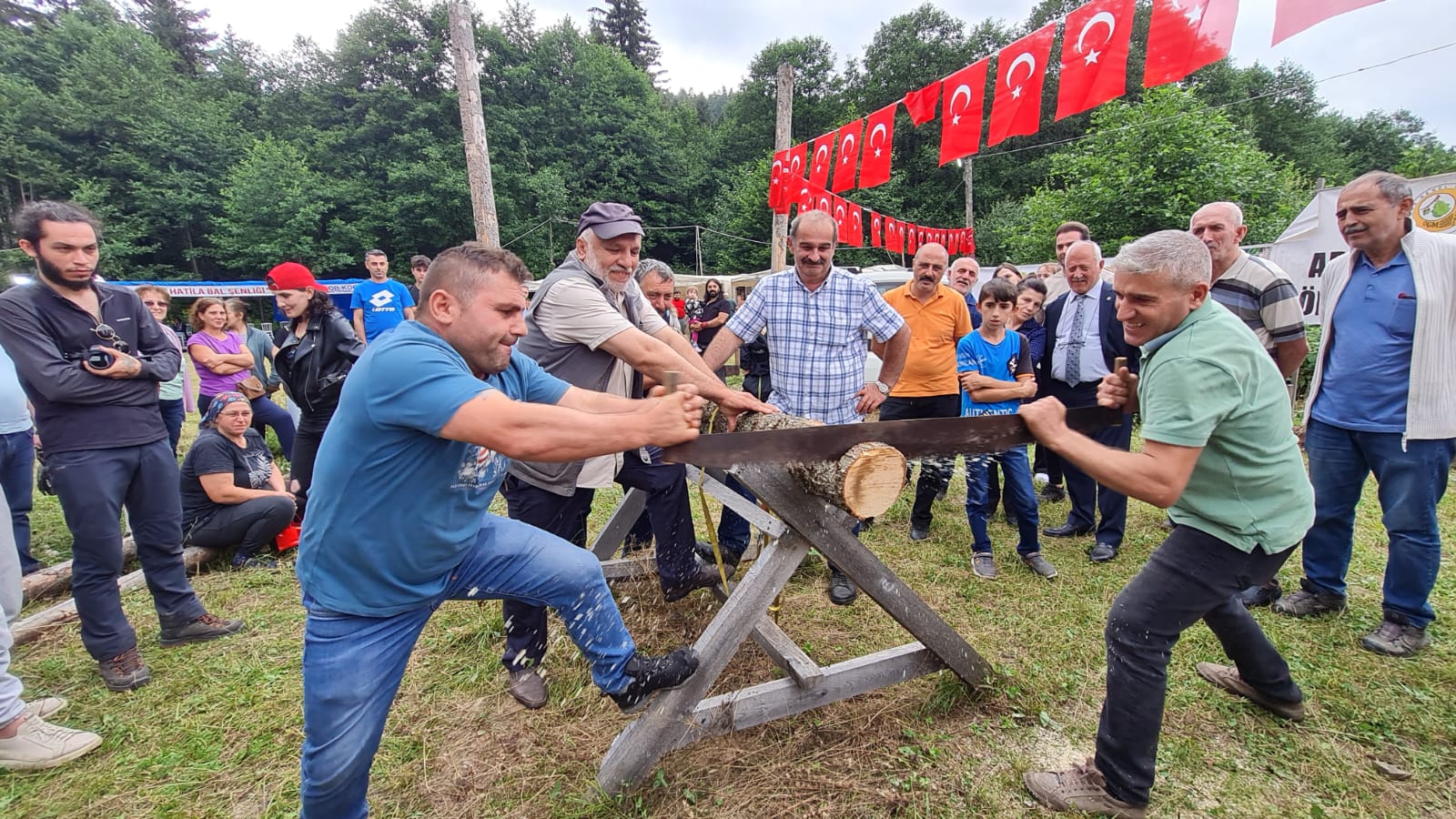 Kütük Kesme Yarışı Heyecanı Yaşandı Hatila Bal Şenliği'nde hızarla kütük kesme yarışı renkli anlara sahne oldu Hatila Bal Şenliği'nin bu yıl dörd&