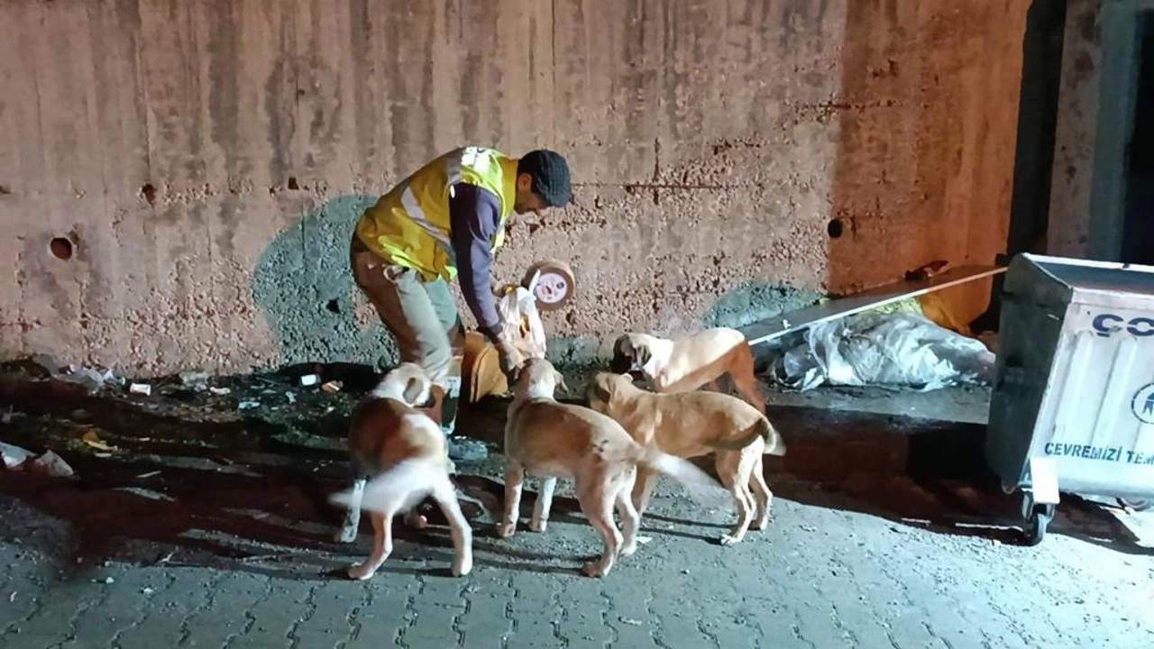 Soğuk havalarda sıcak görüntüler Artvin Belediyesi temizlik personelleri, çöpe atılan yiyecekleri toplayıp sokak hayvanlarını besliyor. Soğuk kış gün&uum