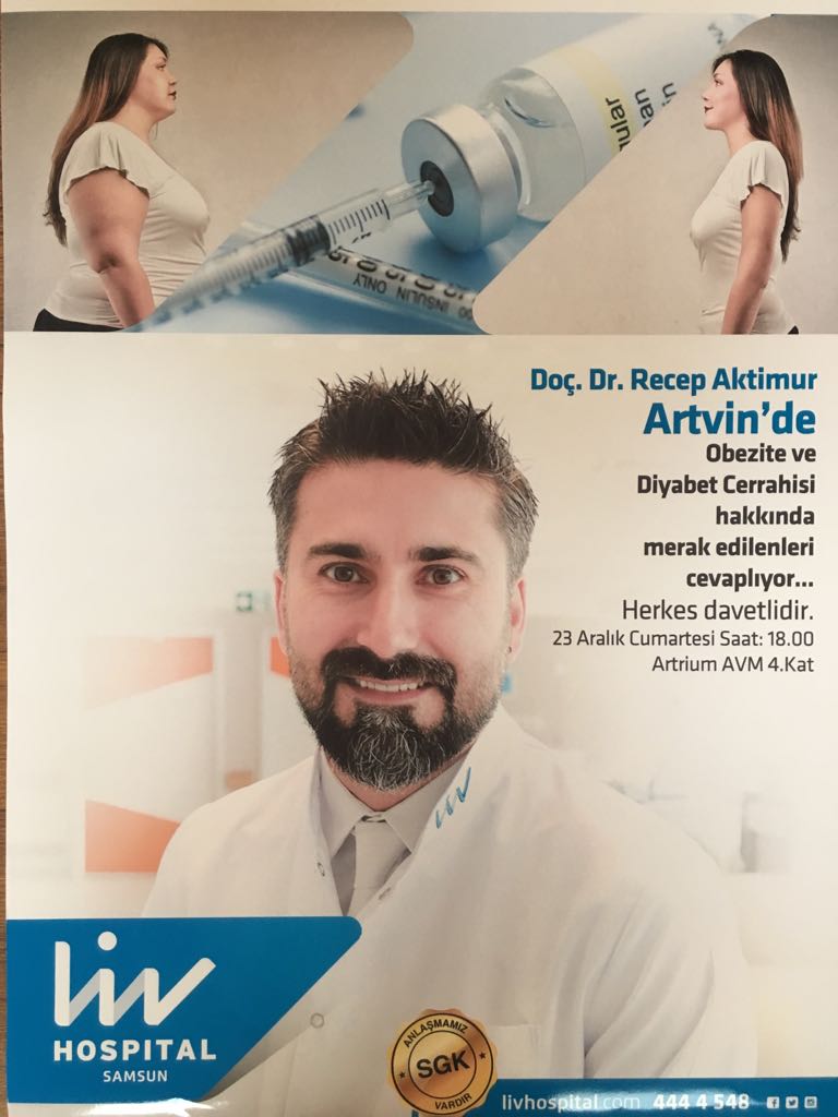 Doç. Dr. Recep Aktimur Artvin’e Geliyor Doç. Dr. Recep Aktimur, “Obezite Ve Diyabet Cerrahisi” hakkında merak edilenleri cevaplamak için 23 Aralık 201