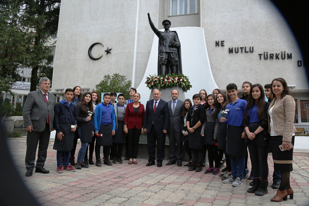 Atatürk Anıtı Öğrenciler Tarafından Karanfille Süslendi