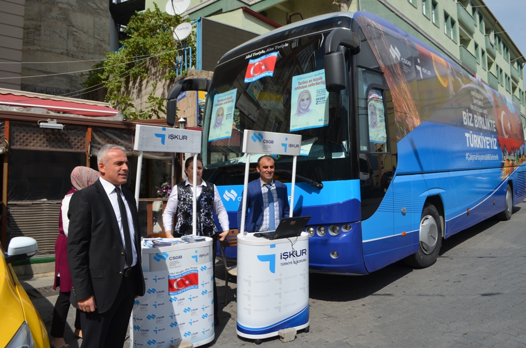 İŞKUR Otobüsü Artvin’de Türkiye İş Kurumunca (İŞKUR) Çalışma Hayatında Milli Seferberlik Programı kapsamında kurumun hizmetlerini tanıtmak amacıyla ol
