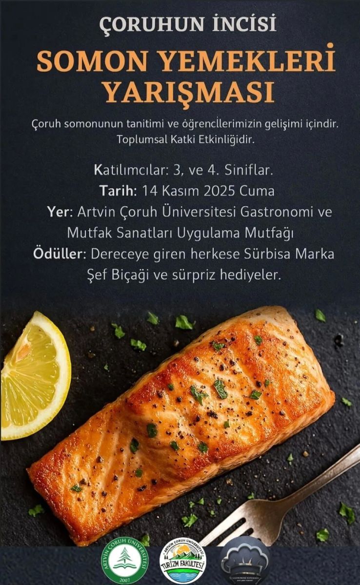 Artvin Çoruh Üniversitesi Gastronomi ve Mutfak Sanatları Bölümü öğretim üyesi Prof. Dr. Hüdayi Ercoşkun’un koordinasyonunda düzenlenecek etkinlikte öğrenciler, somonla hazırladıkları yaratıcı yemeklerle yarışacak.