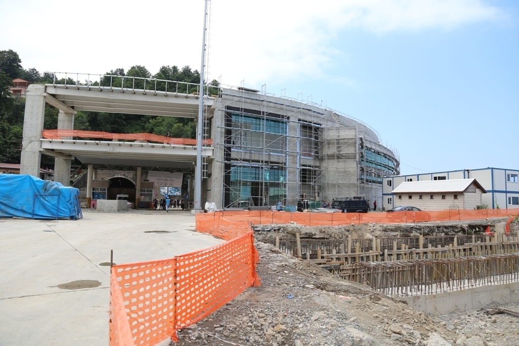 Daha sonra Sarp Gümrük Kapısı'na karayoluyla geçen Cumhurbaşkanımız Sayın Erdoğan, gümrük kapısının yeniden yapılandırılması inşaatına ilişkin incelemelerde bulundu.