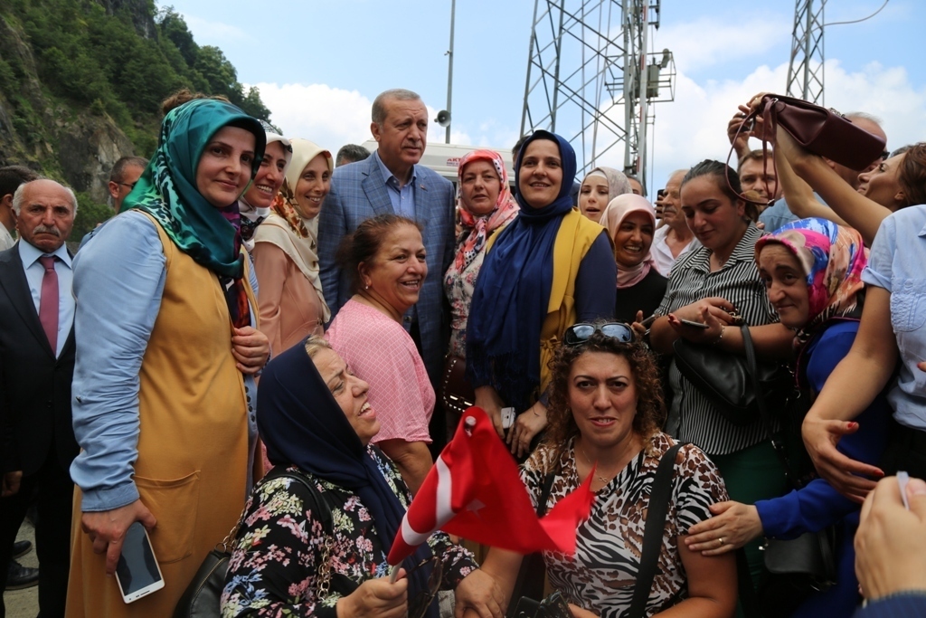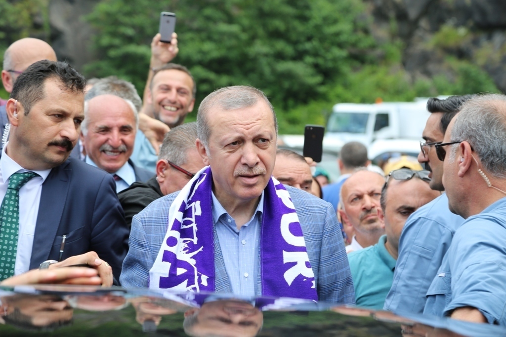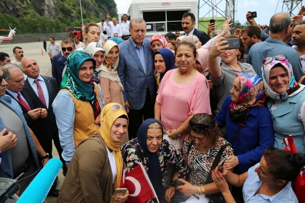 Güneysu'daki ikametinden ayrılarak helikopterle Hopa ilçesi Kopmuş mevkisine gelen Cumhurbaşkanımız Sayın Erdoğan’ı burada Gümrük ve Ticaret Bakanı Bülent Tüfenkci, İçişleri Bakanı Süleyman Soylu, Artvin Valisi Ömer Doğanay ve çok sayıda vatandaş karşıladı.