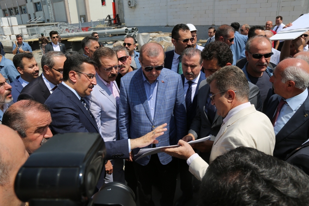 İnşaat sahasını gezerek yetkililerden çalışmalar hakkında bilgi alan Sayın Erdoğan'a basına kapalı gerçekleşen incelemesi sırasında Gençlik ve Spor Bakanı Osman Aşkın Bak, İçişleri Bakanı Süleyman Soylu, Rize Valisi Erdoğan Bektaş ile Türkiye Odalar ve Borsalar Birliği Başkanı Rifat Hisarcıklıoğlu da eşlik etti.