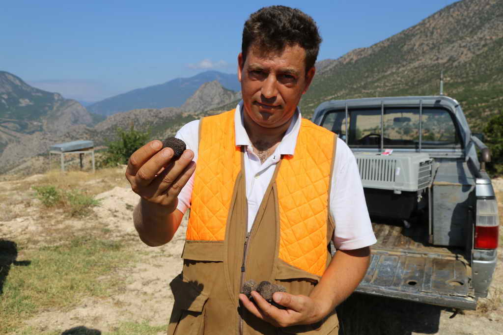Mantar aramasını eğitimli köpekle yaptıklarını kaydeden Arslan “Köpeğimiz mantarın kokusundan yerini bulduğu zaman kazarak, mantarı çıkararak bize mantarın yerini göstermiş oluyor. Trüflerin ekonomik değer taşıyan sekiz türü vardır. Bizim bulduğumuz tür Yazlık Trüf dediğimiz türdür. Türler arasında en düşük ekonomik değeri olan trüf türüdür ama doğada en çok rastlanan tür olması nedeniyle önemli.