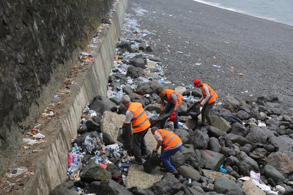 Yaklaşık 10 gün önce kurulan ve sadece söz konusu karayolunun temizliği için kurulan temizlik ekipleri, Hopa Termik Santral mevkii ile Sarp Sınır Kapısı arasındaki çift yönlü karayolunun toplam 34 kilometrelik alanı çöplerden temizleniyor.