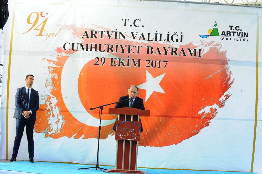 Artvin Valisi Ömer Doğanay ise törende yaptığı konuşmada, 1923'te ilan edilen Cumhuriyetin 94. kuruluş yıl dönümünü büyük bir gurur ve heyecanla kutladıklarını söyledi.