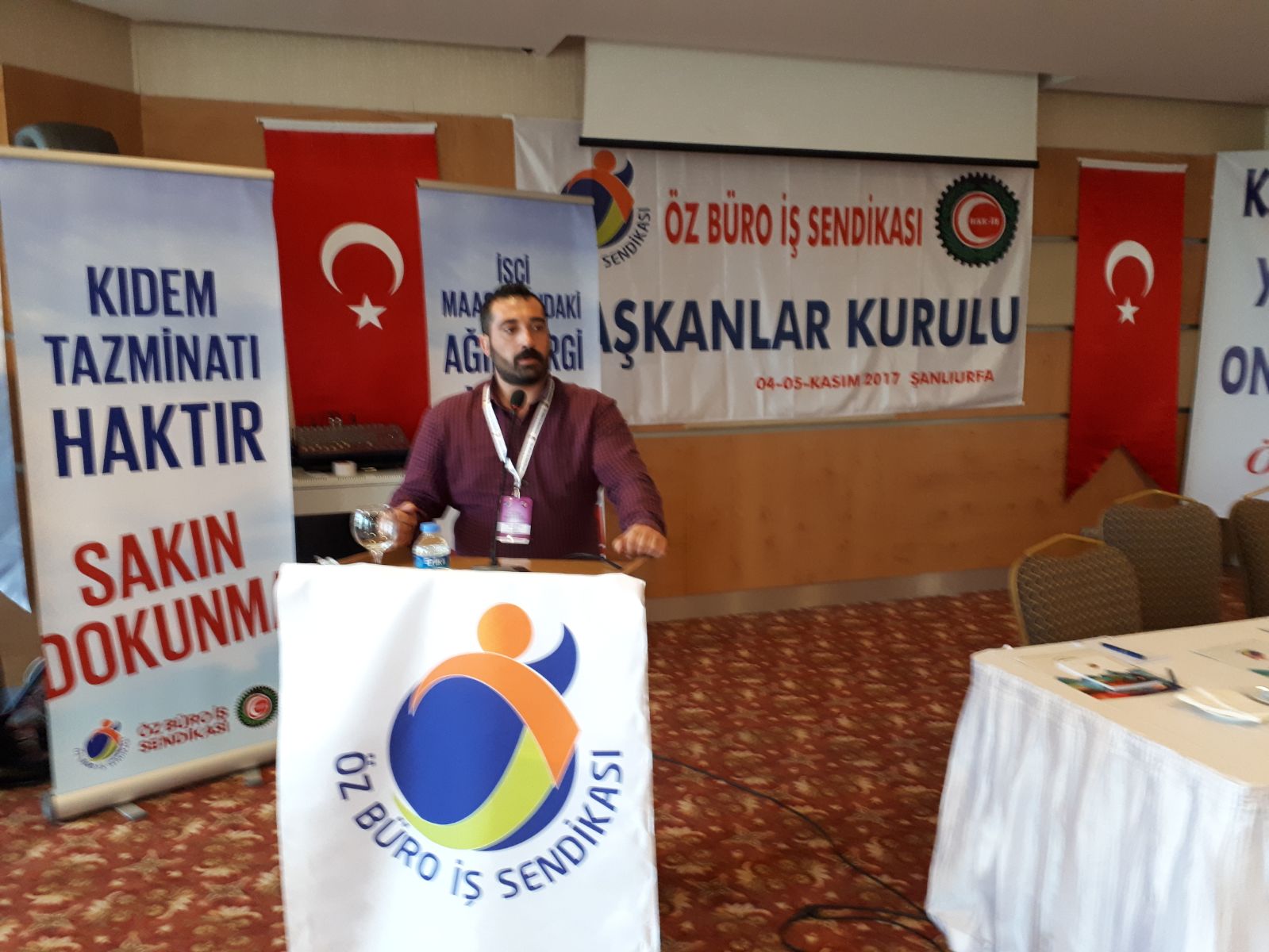 Şanlıurfa’da yapılan toplantıda Öz Büro İş Sendika Genel Başkanı Baki Gülbaba’nın yapmış olduğu açıklamasını hatırlatarak; "Taşeron sorunu artık bir ülke sorunudur, basite indirgenmemeli, hafife alınmamalı, maliye bürokrasisine terk edilmemelidir. Bu sorun, TBMM'de, çok yakın bir zamanda hükümetin hazırlayacağı tasarının yasalaşması şekliyle artık sonlandırılmalıdır. Taşeron konusu yeni Türkiye'nin, güçlü Türkiye'nin ayıbıdır, taşeron hukuksuzluktur. Artık Türkiye bu hukuksuzluktan bir an önce kurtarılmalıdır. Bu sorunun kısa süre içinde bitirileceğini düşünüyorum. Hükümetin, taşeron konusunun mutlak anlamda yeni yıl gelmeden çözülmesi gerektiğine dair bir noktada olduğunu biliyoruz."