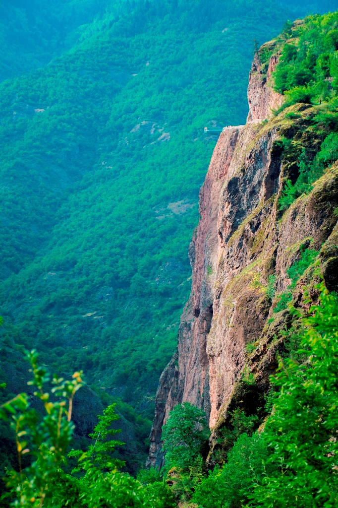 220 metre yükseklikte sarp kayalara monte edilen terasa çıkmak ise cesaret istiyor. Bazı ziyaretçiler buraya çıkıp fotoğraflar çekerken, bazıları ise çıkmaya cesaret edemeyip, yakınında bekliyor.