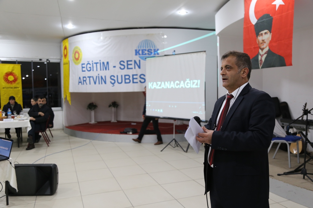 Eğitim Sen Artvin Şubesi Başkanı Köksal Gümüş gecede yaptığı konuşmasında, “ Eğitim iş kolun da mücadele ediyoruz. Eğitim bir ülkenin geleceğini var eden toplumsal yaşamı şekillendiren en temel araçtır. Köy Enstitülerinin kapatılmasıyla başlayan eğitimde gerileşme süreci günümüz AKP iktidarıyla da katlanarak devam etmektedir.