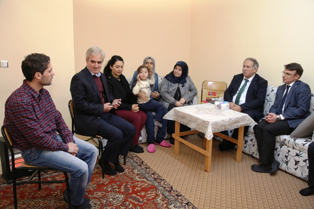 Suriyeli misafirleri kaldıkları evlerinde eşiyle birlikte ziyaret ederek ihtiyaçlarının olup olmadığını görmek istediklerini ifade ederek, ”Şunu memnuniyetle ifade edebilirim ki devletimiz tüm olanaklarını kendi vatandaşlarımızda olduğu gibi Suriyeli misafirlerimizin ihtiyaçlarının karşılanmasında da kullanmaktadır. Suriyeli misafirlerimiz ülkelerindeki sorun giderilene kadar devletimizin ve bizlerin misafiridirler. Onların her türlü ihtiyaçlarının giderilmesi için her türlü imkân kullanılmaktadır” dedi.