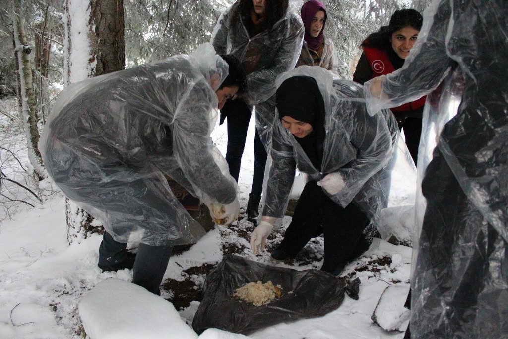 Üniversiteli gençler, kaldıkları yurtlarda, kalan taze ekmekleri hayvanların yemesi için Kafkasör mevkiinde bulunan ormanların belirli bölgelerine bıraktılar.