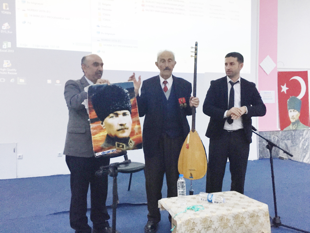 Program bitiminde Şavşat Anadolu Öğretmen Lisesi Müdürü Selahattin İşçi Aşık İbrahim Kara’ya Atatürk portresi hediye etti.